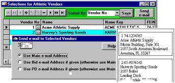 APSWin Vendor Management lets you automate bidder and commodity management Benefits include: Ø Eliminate repetitive data entry by establishing master vendor and commodity/service files. Ø Automatically generate and save bidder lists and print labels by commodity/service code, vendor category (e.g. MBE/WBE), and/or region. Ø On-line status inquiry eliminates the need for time-consuming manual file searches. Ø Increase competition and realize lower prices by using a broad-based automated vendor file. Ø Use any one of several major Commodities and Services Classification Systems (UNSPSC, NAICS, SIC, FSC, or NIGP) to standardize your commodity classifications, or create your own unique coding system with up to eight coding levels. Ø Integrated email provides an Internet address book for vendor communications. Ø One-click Internet access to vendor web sites for quick and easy price comparisons. |